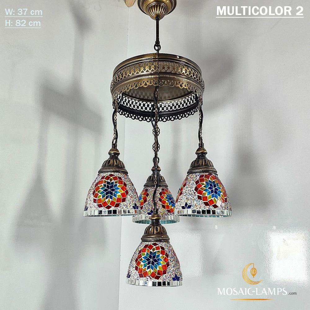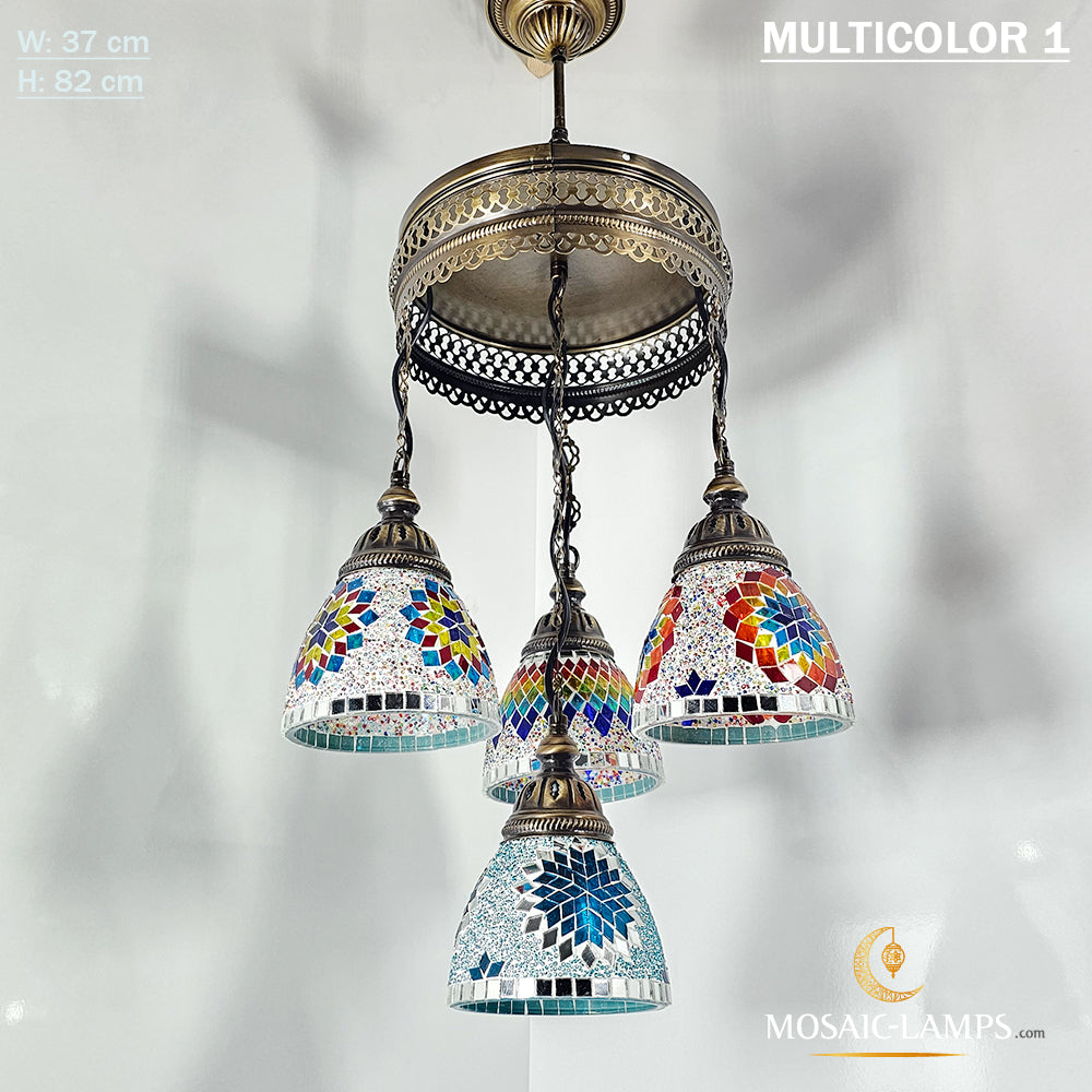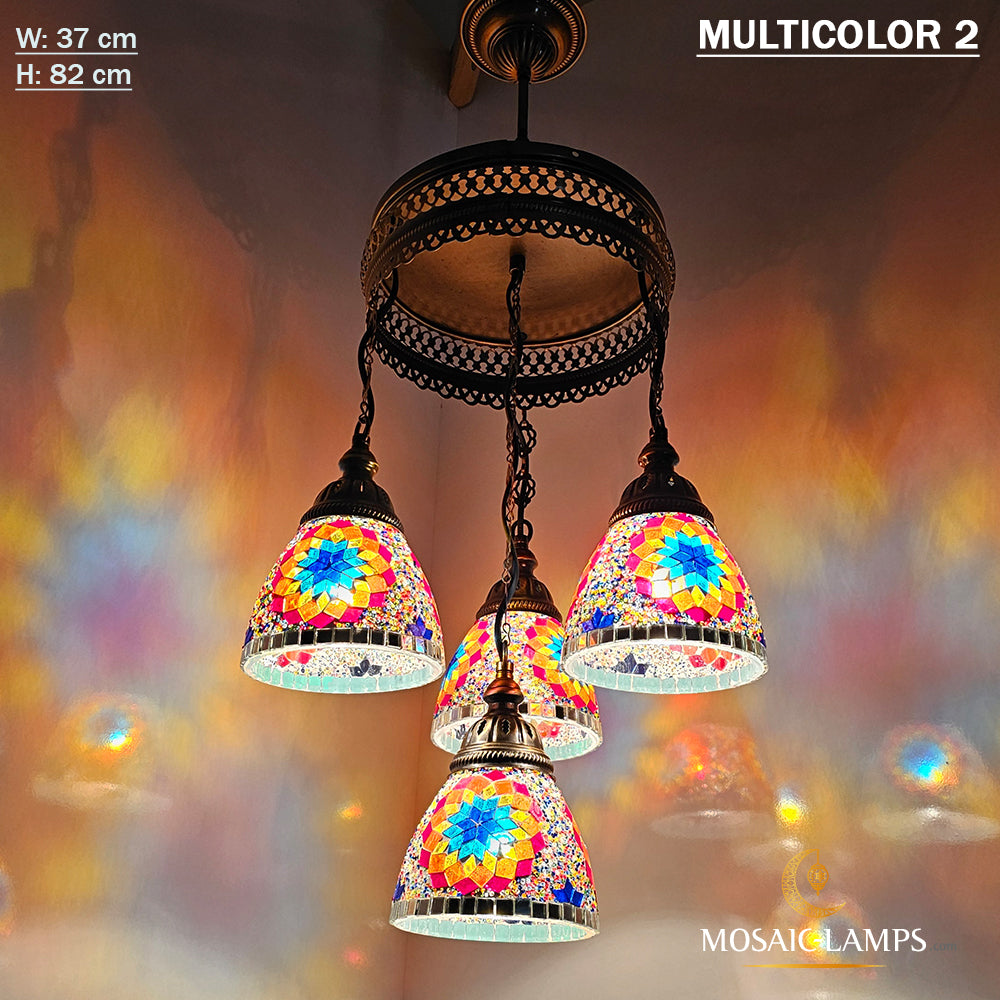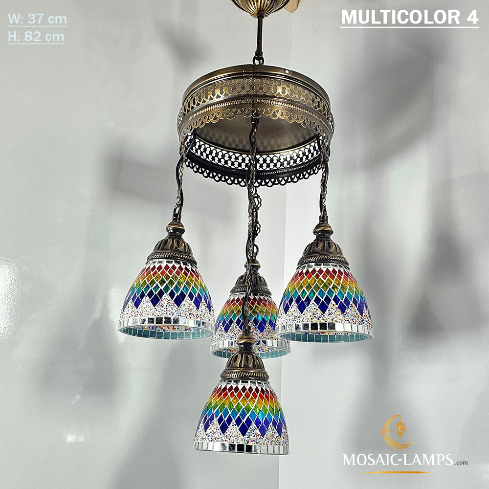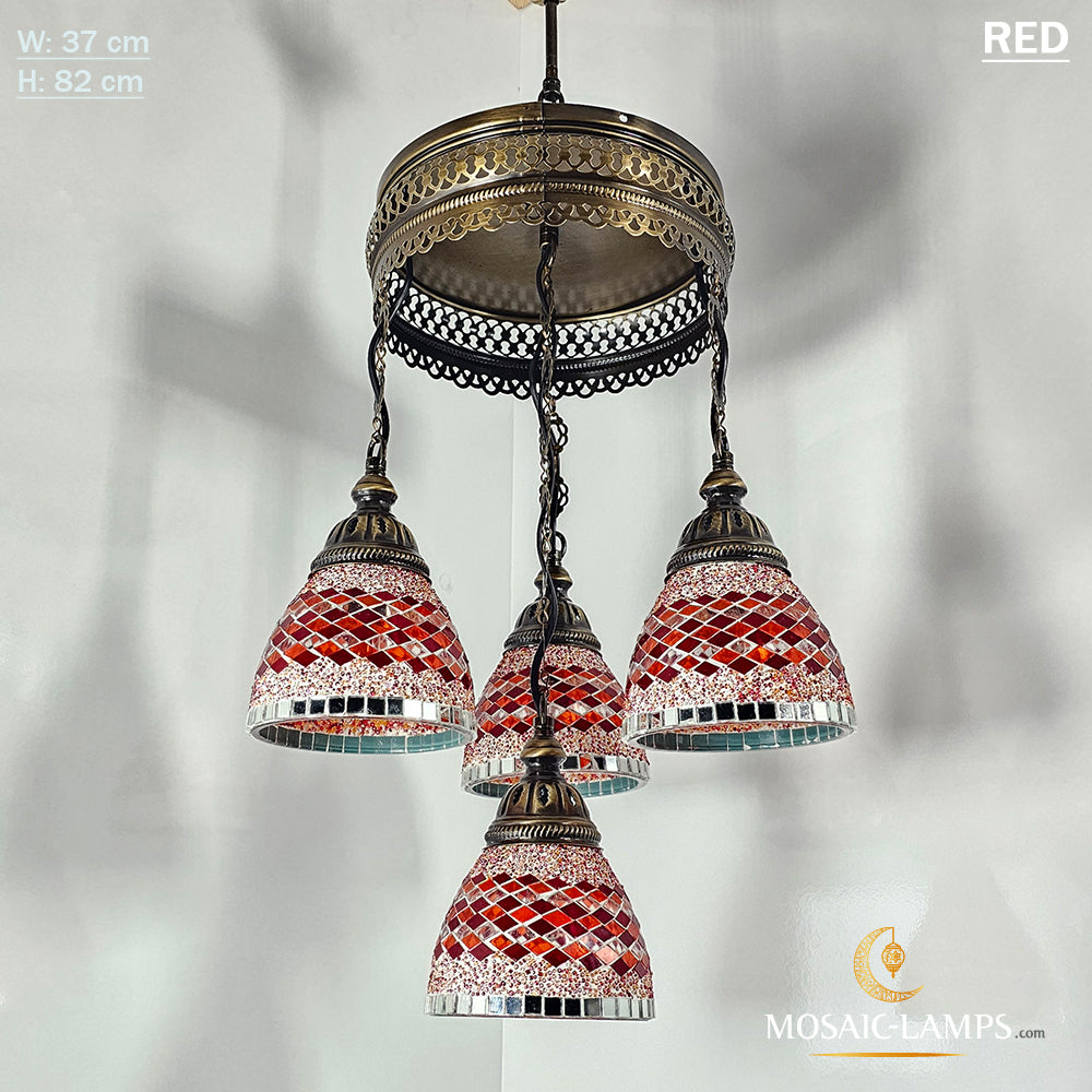Retro Funnel Chandelier, 4 Globe Turkish Lamp with Open Bottom, Handmade Colorful Globe Bronze Color Lamp, Restaurant, Bedroom, Living Room.