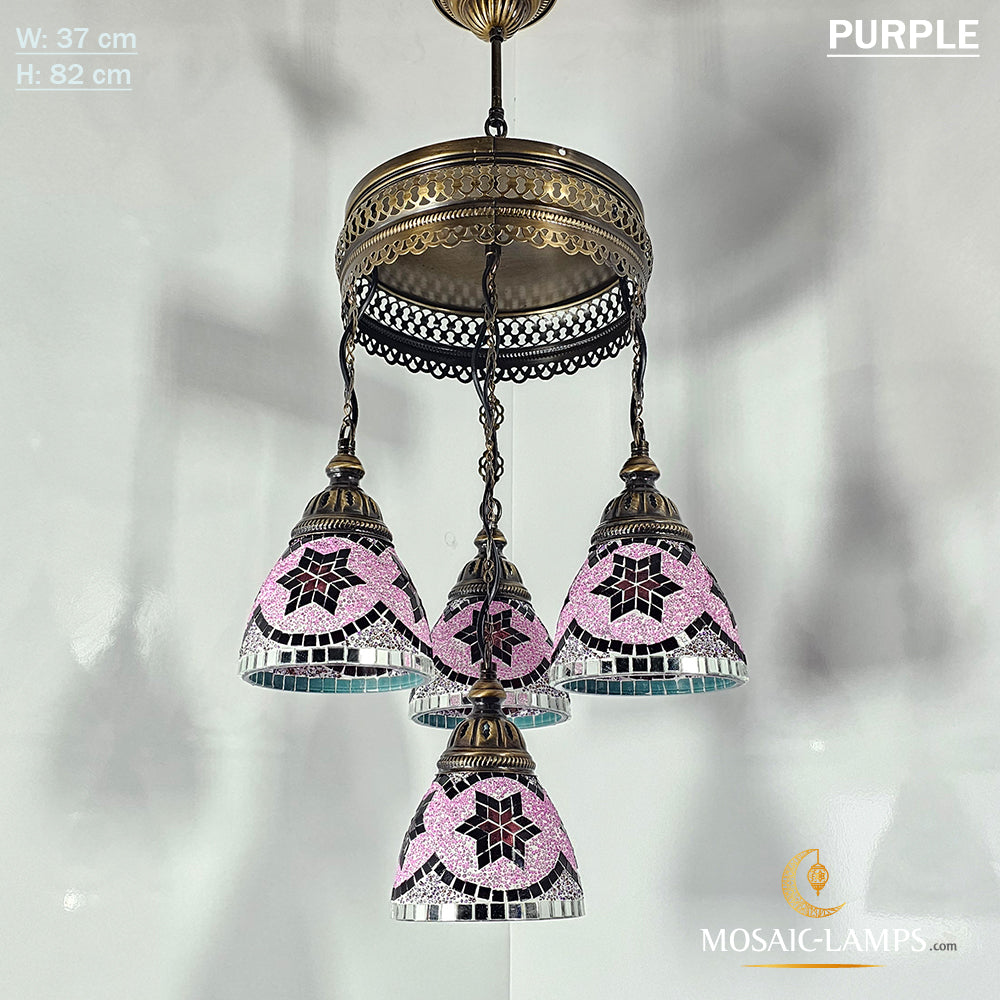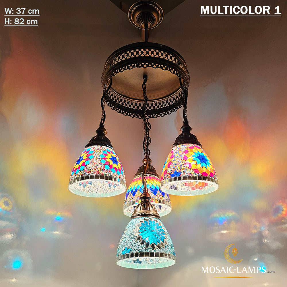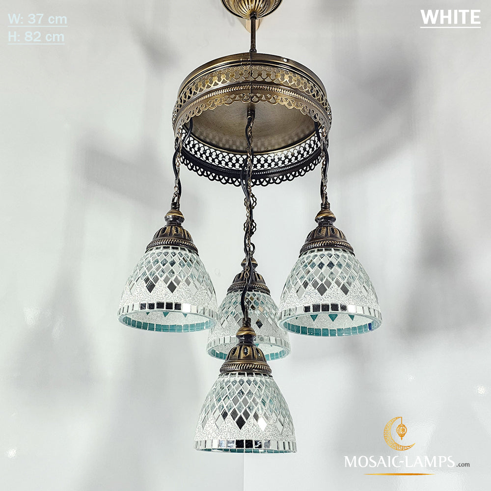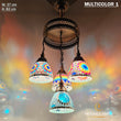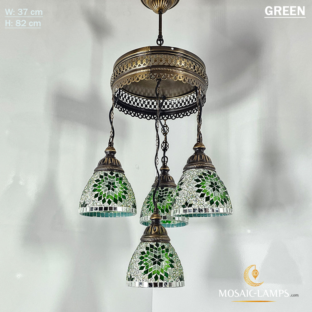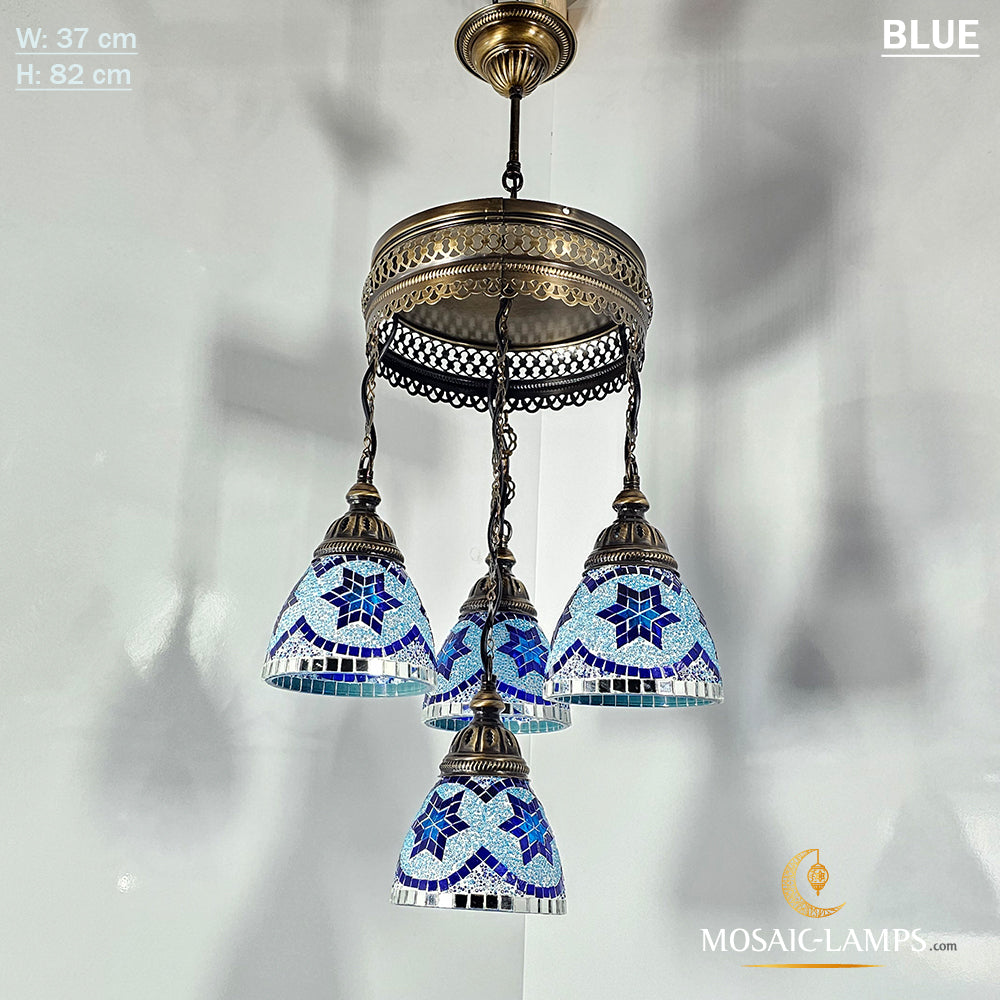 Retro Funnel Chandelier, 4 Globe Turkish Lamp with Open Bottom, Handmade Colorful Globe Bronze Color Lamp, Restaurant, Bedroom, Living Room.
