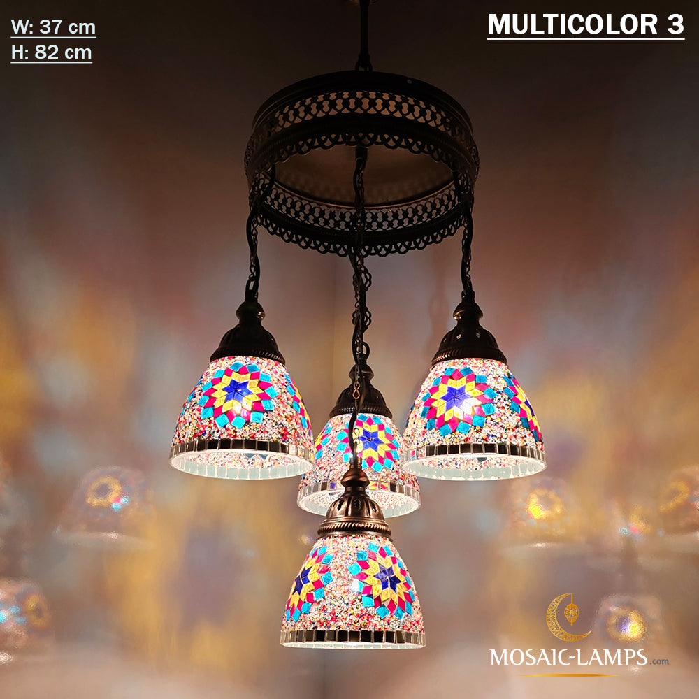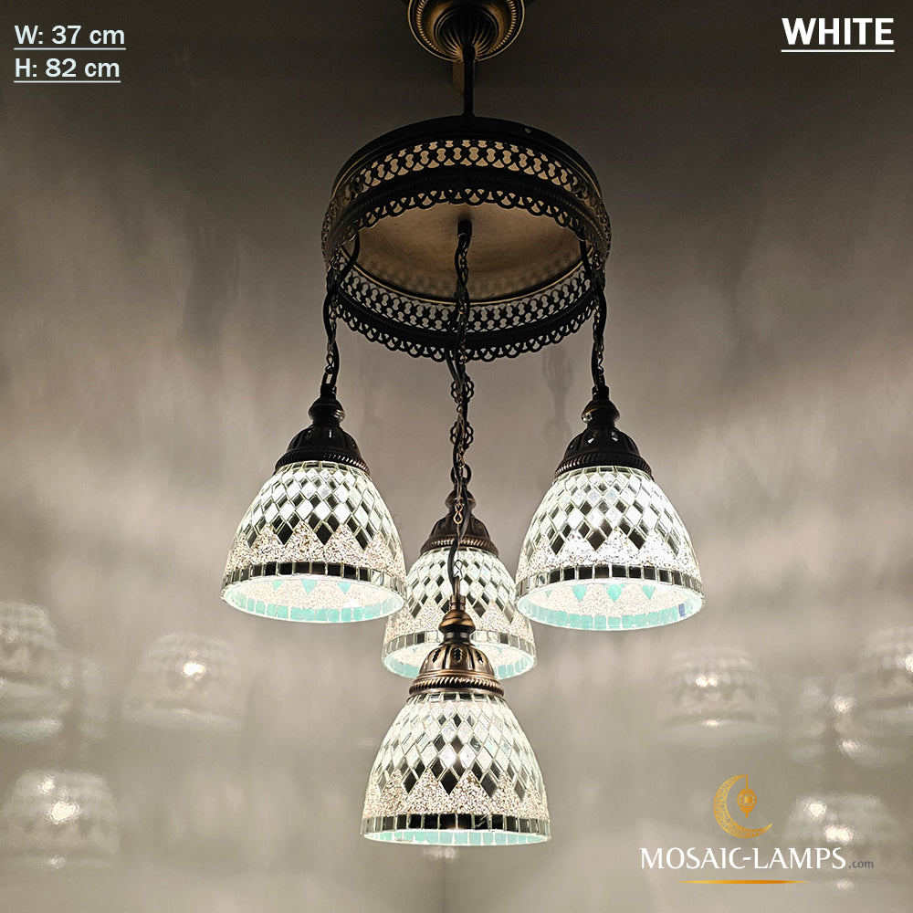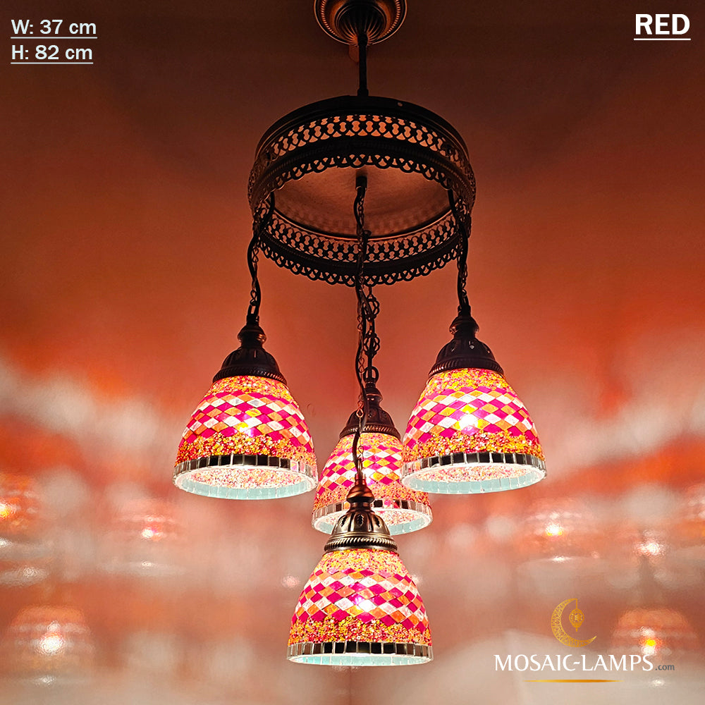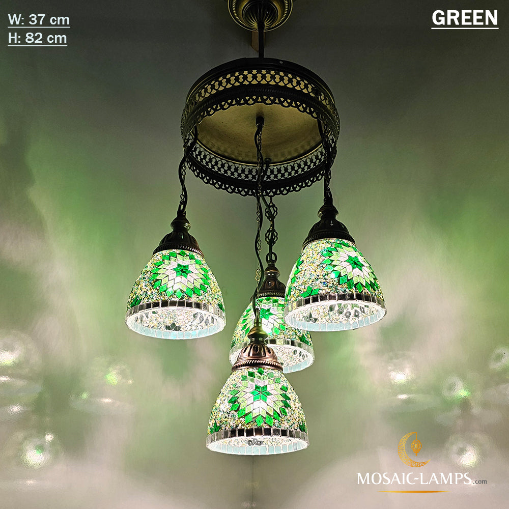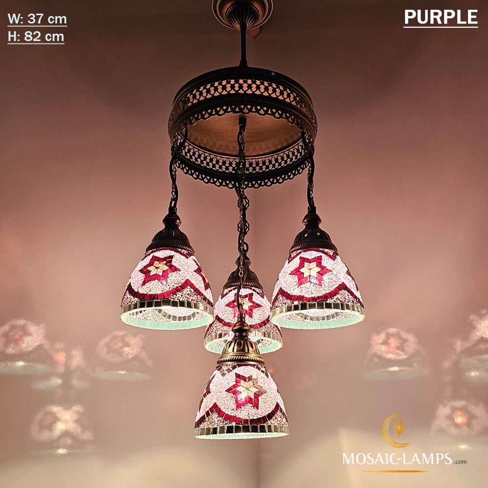 Retro Funnel Chandelier, 4 Globe Turkish Lamp with Open Bottom, Handmade Colorful Globe Bronze Color Lamp, Restaurant, Bedroom, Living Room.
