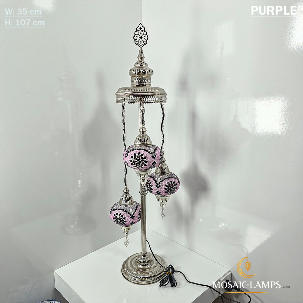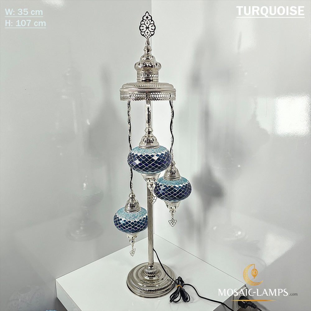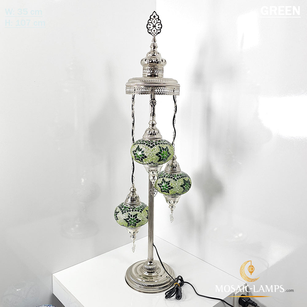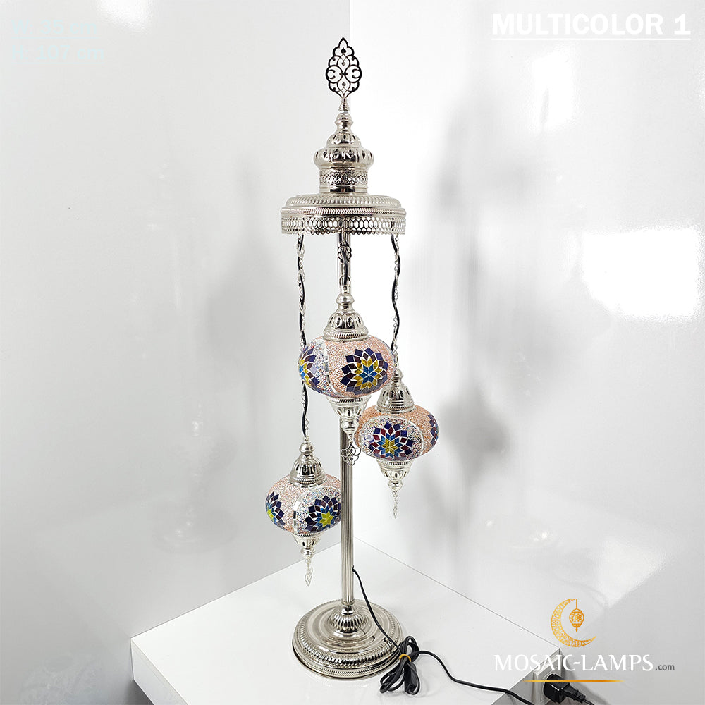 Silver Metal 3 Globe Turkish Floor Lamps, Large Globe, Living Room Bedside Floor Lights, Bedroom Floor Lighting, Handmade Mosaic Ball Floor Lamp.