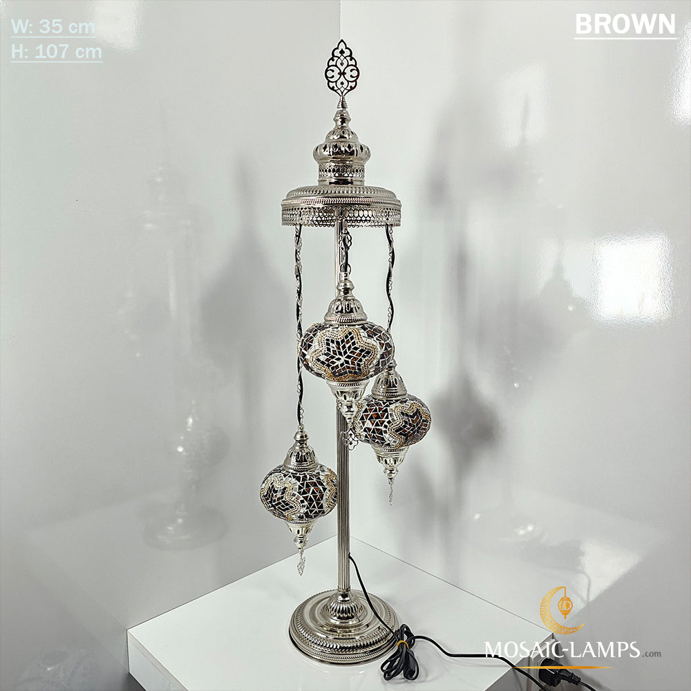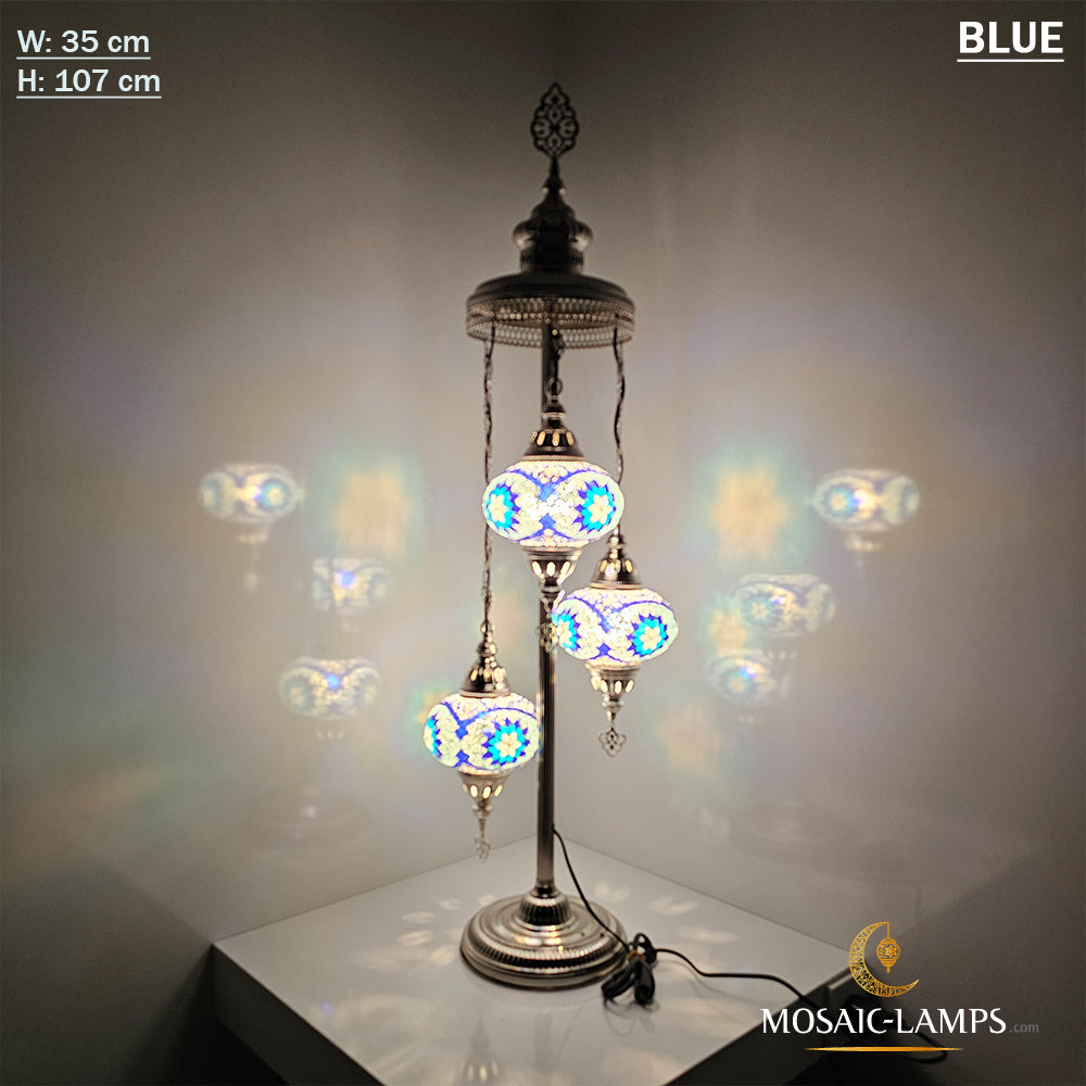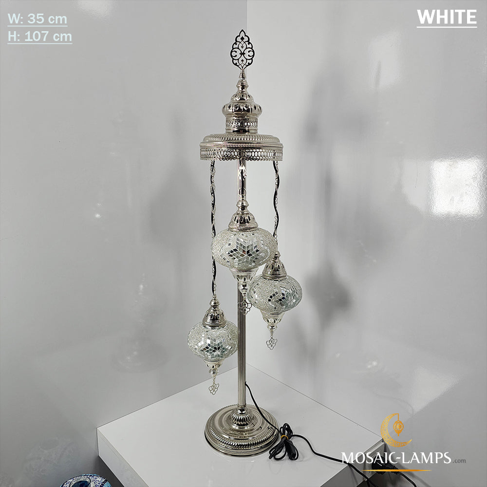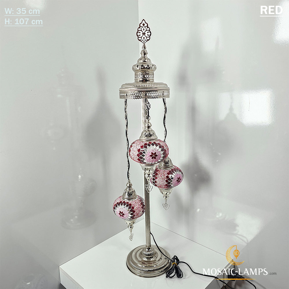 Silver Metal 3 Globe Turkish Floor Lamps, Large Globe, Living Room Bedside Floor Lights, Bedroom Floor Lighting, Handmade Mosaic Ball Floor Lamp.