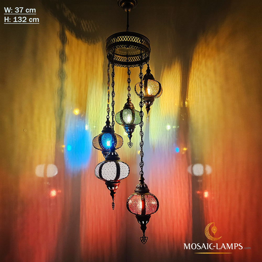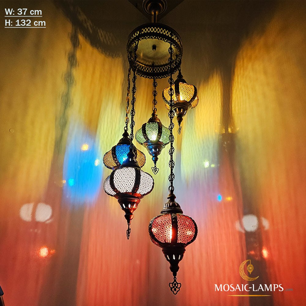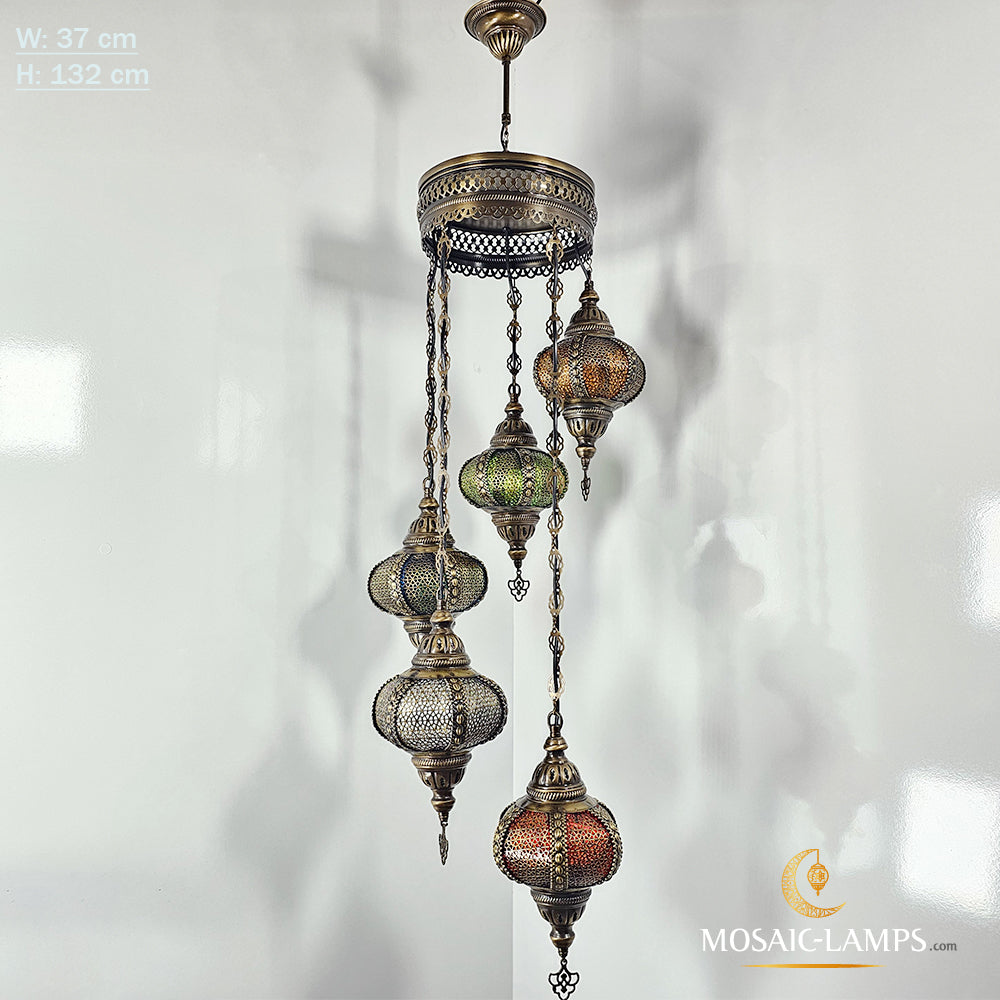Spiral 5 Sphere Byzantine Lights, Moroccan, Syrian, Ottoman Metal Motif Chandeliers, Colored Sphere Lights, Living Room, Restaurant, Cafe.