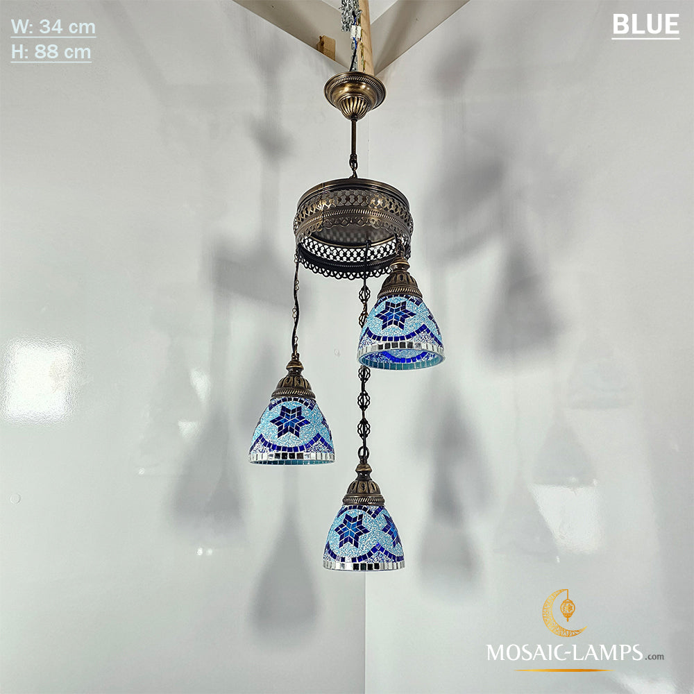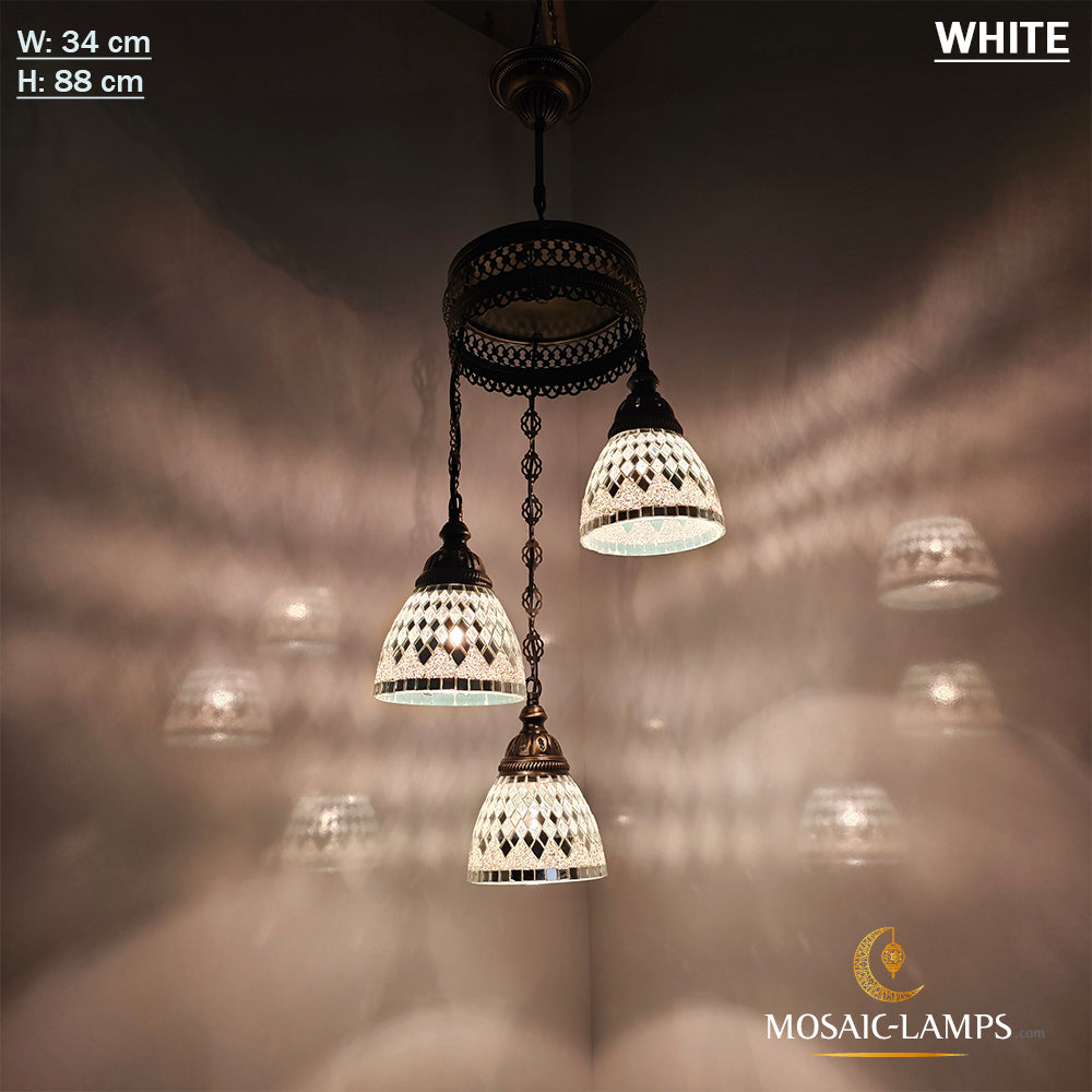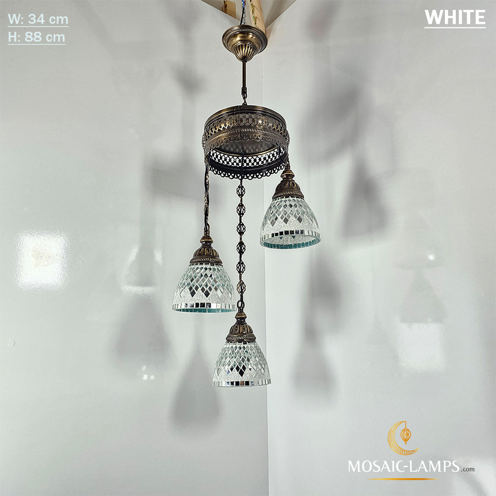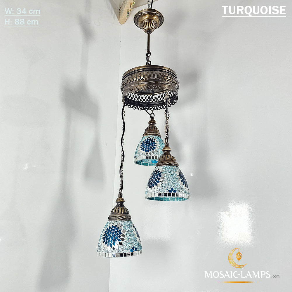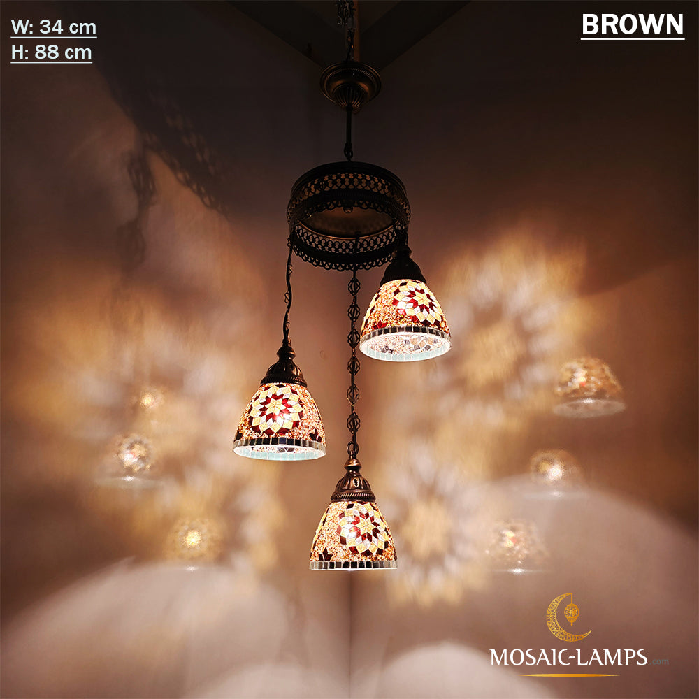 Turkish Funnel Spiral Chandelier, Handmade Mosaic 3 Lights, Living Room Chandelier, Moroccan Hanging Lighting, Cafe, Restaurant Chandelier