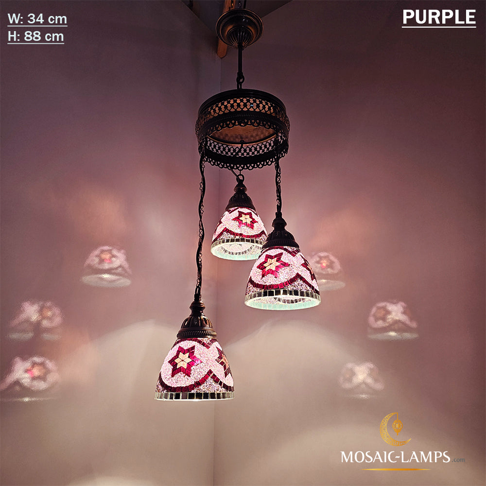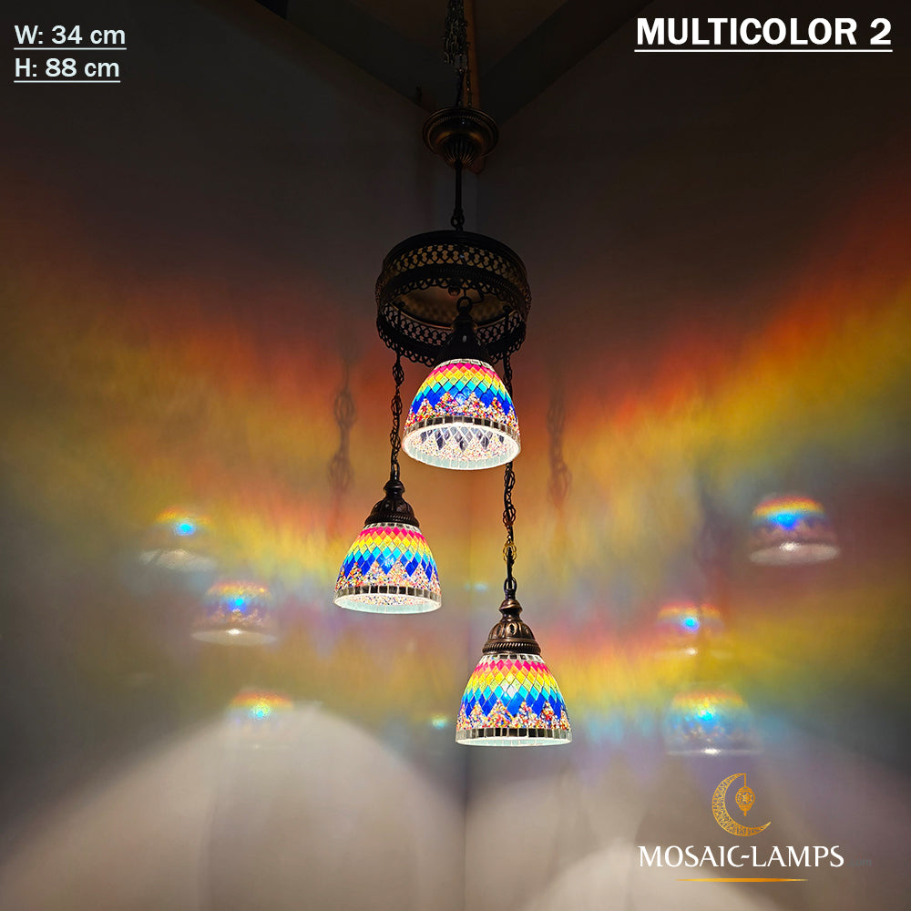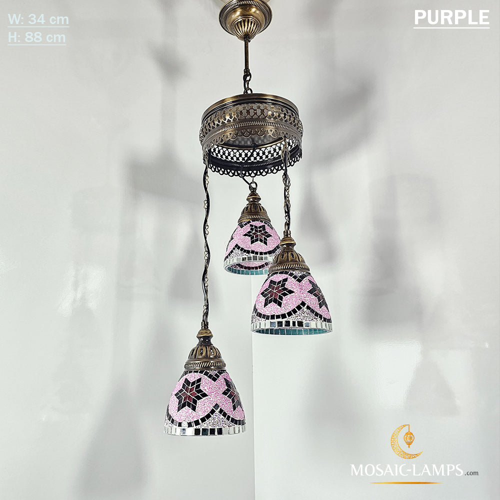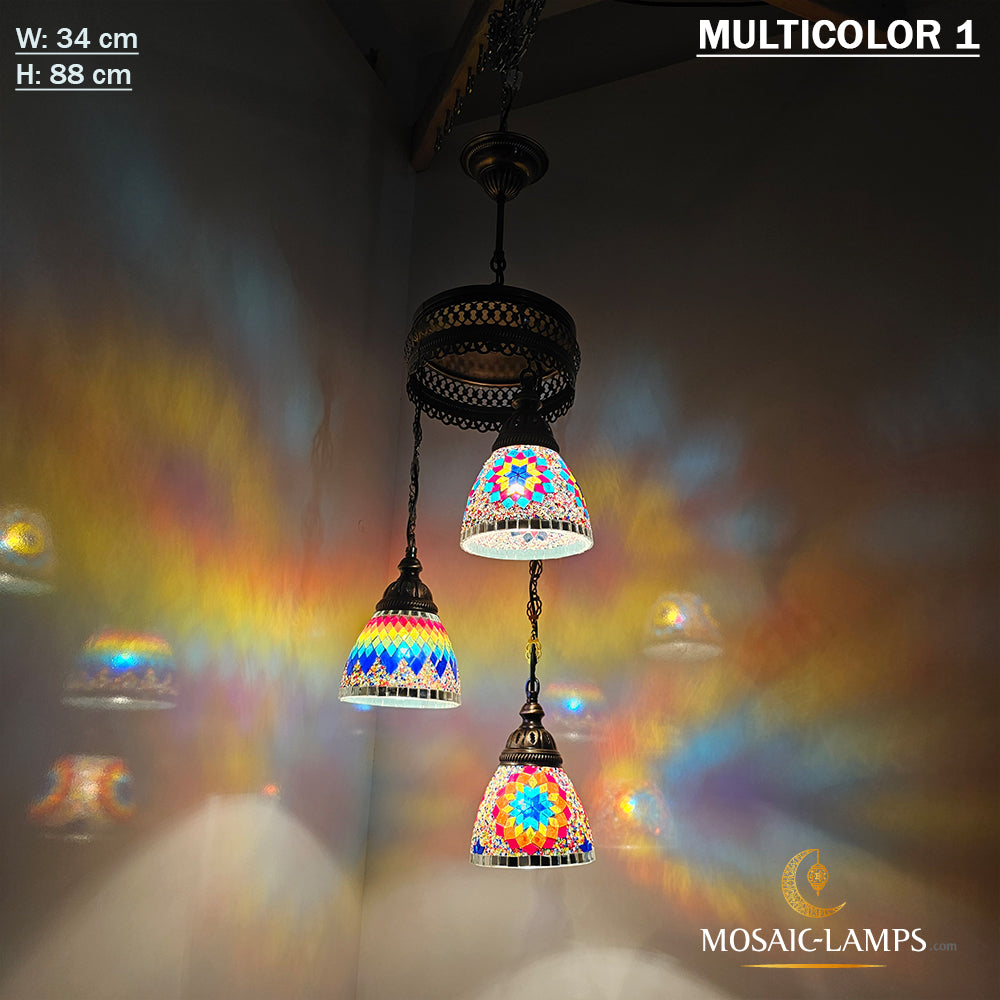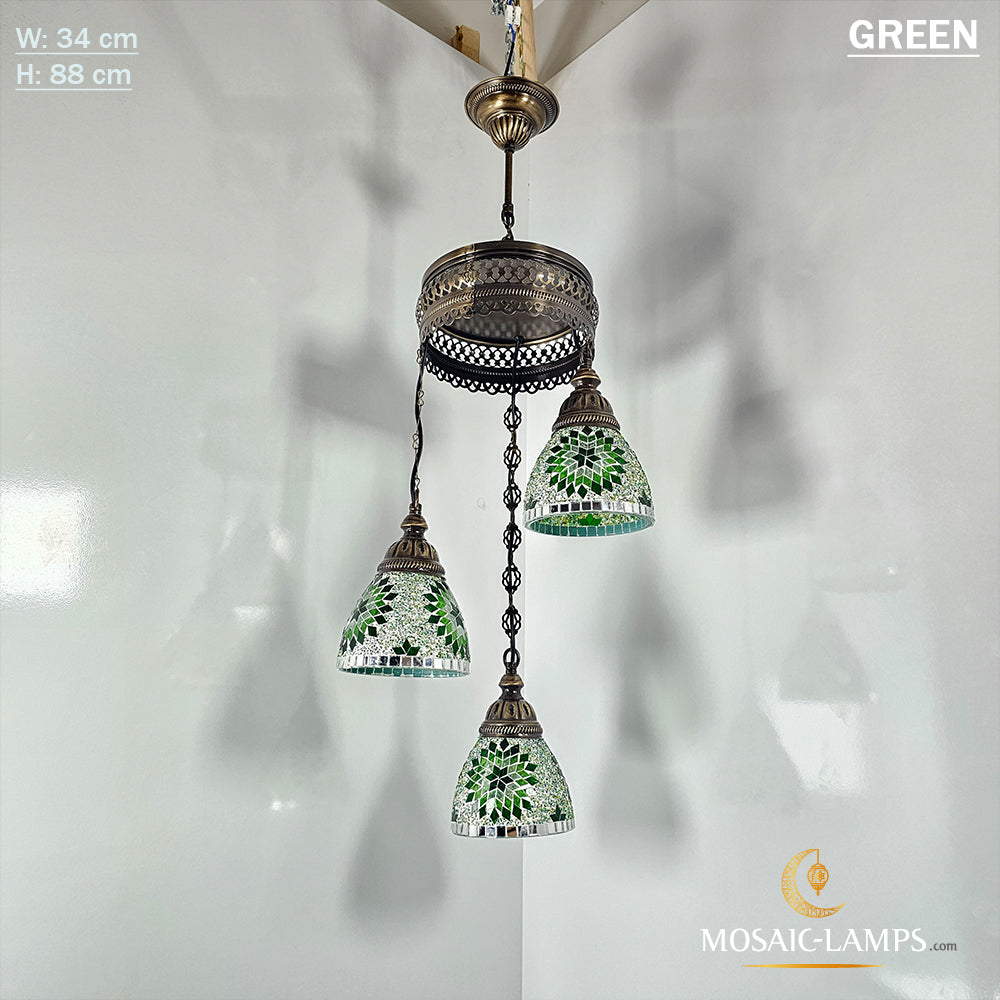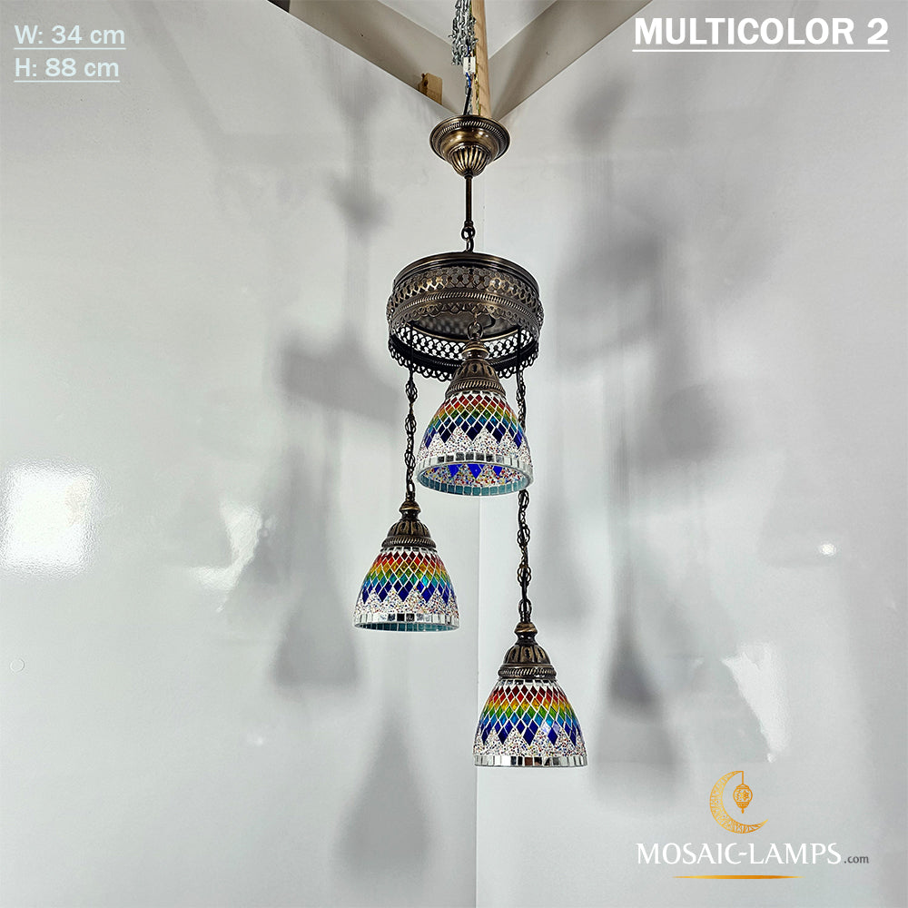 Turkish Funnel Spiral Chandelier, Handmade Mosaic 3 Lights, Living Room Chandelier, Moroccan Hanging Lighting, Cafe, Restaurant Chandelier