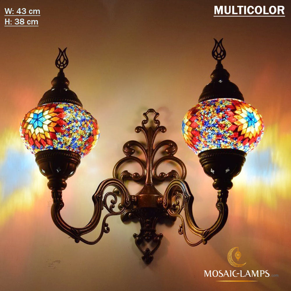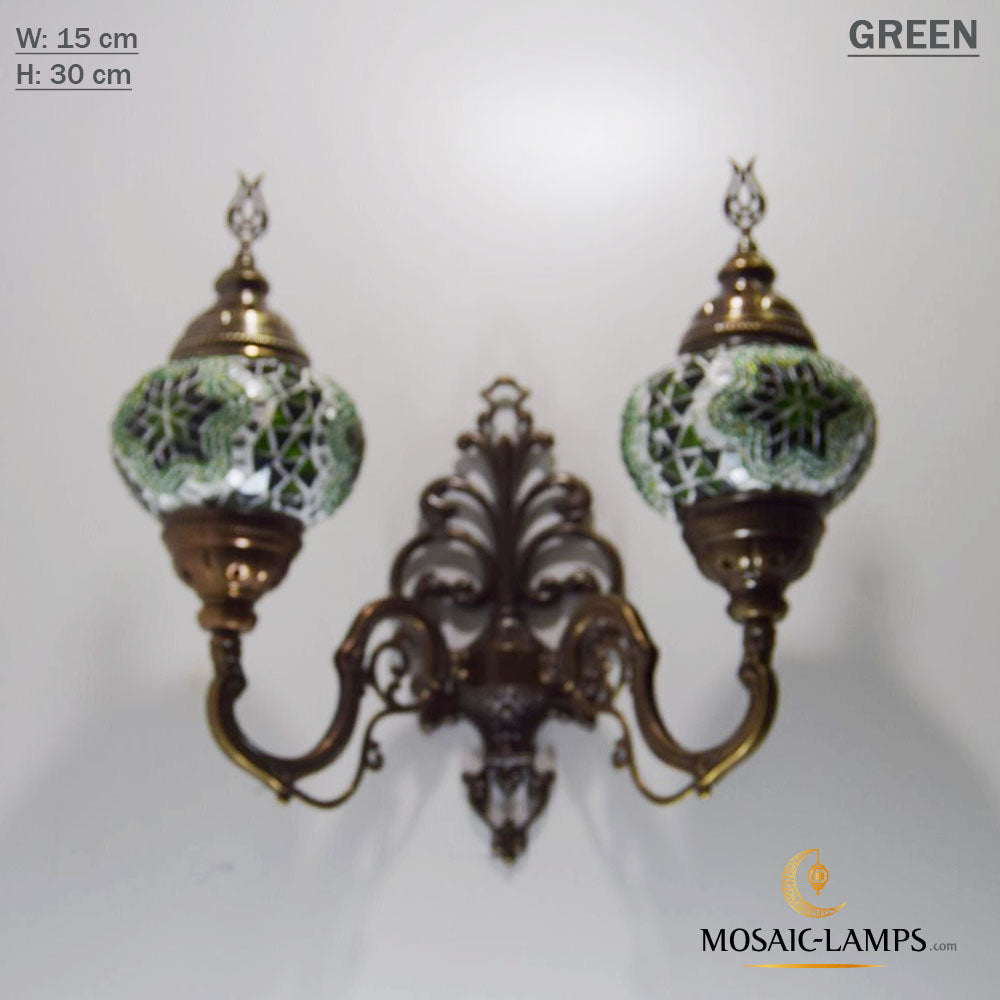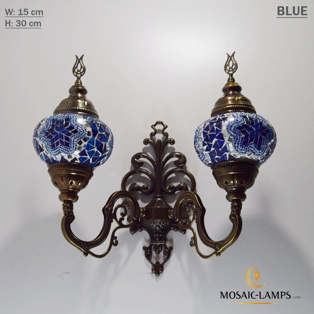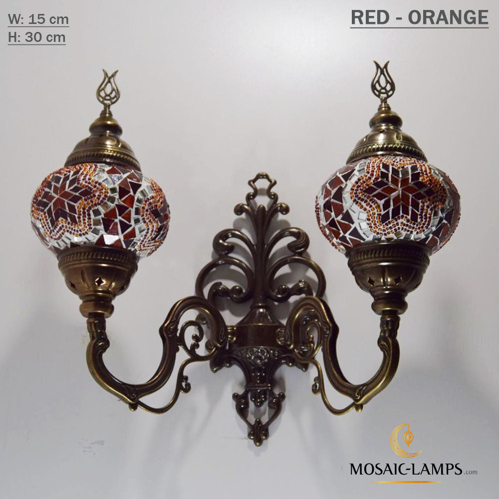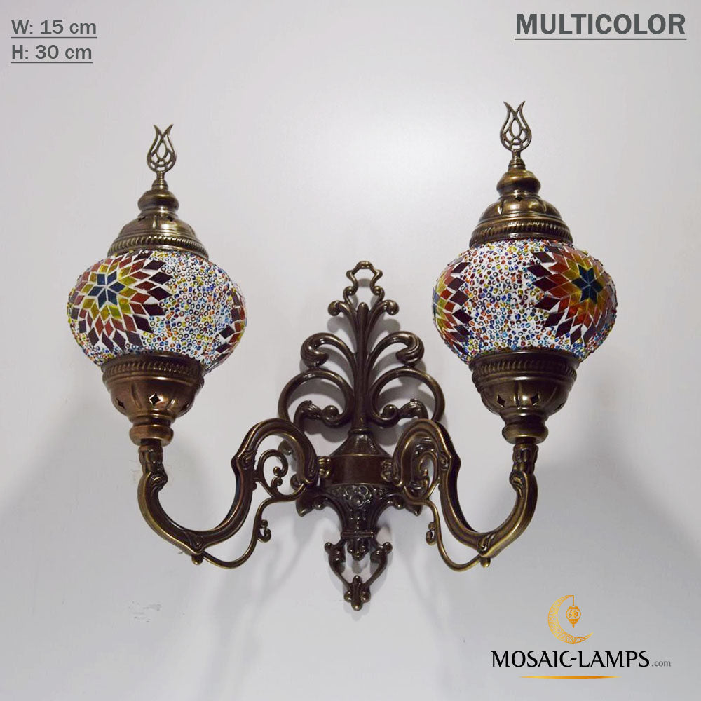 Turkish Mosaic Double Medium Globe Wall Lamp, Traditional Moroccan Vintage Ceiling Lamps, Handmade Marrakech Living Room Bedroom Wall Lights