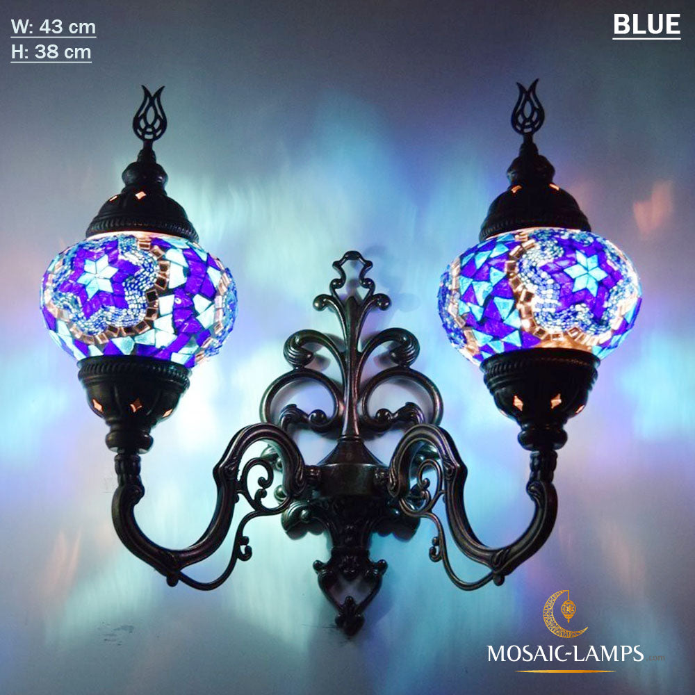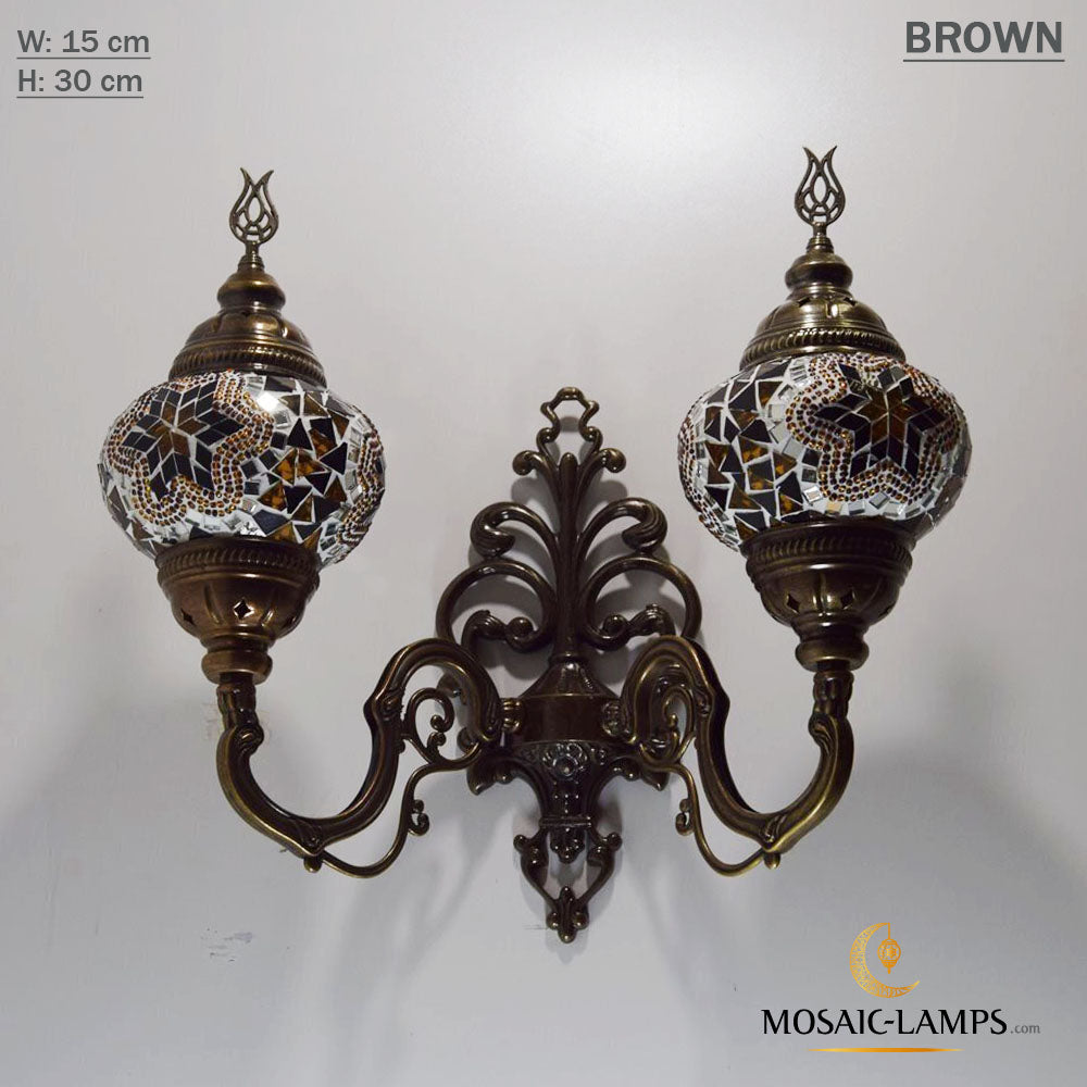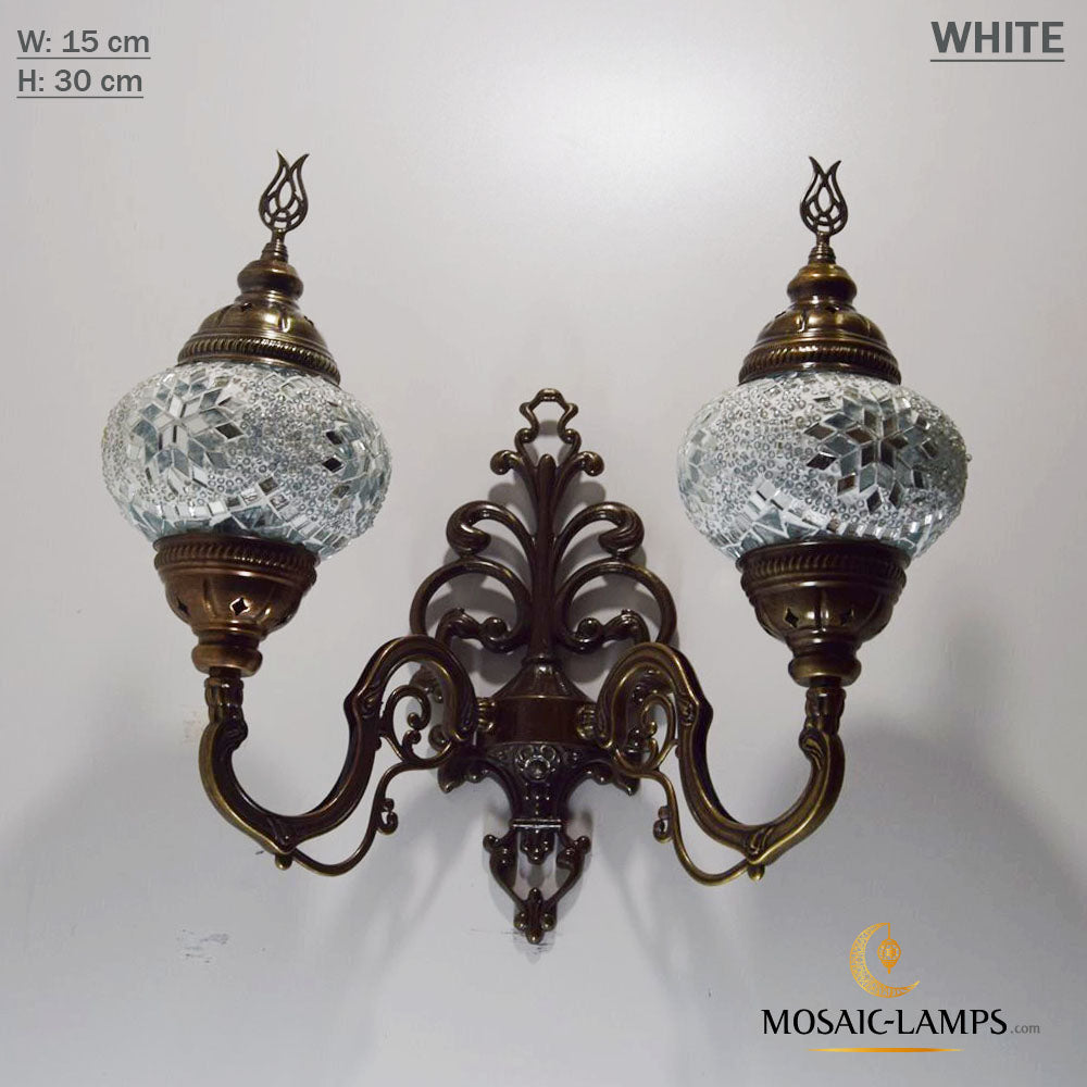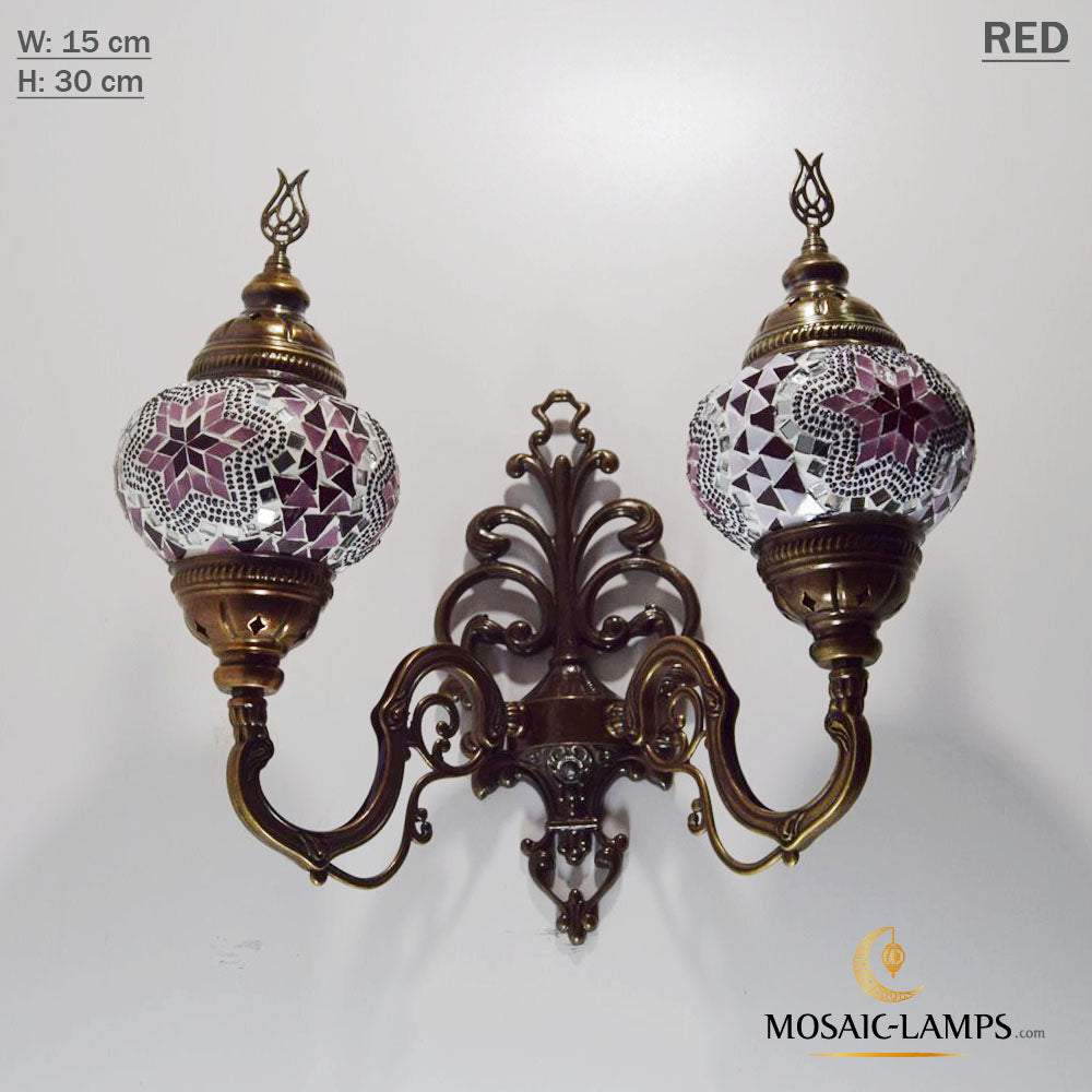 Turkish Mosaic Double Medium Globe Wall Lamp, Traditional Moroccan Vintage Ceiling Lamps, Handmade Marrakech Living Room Bedroom Wall Lights