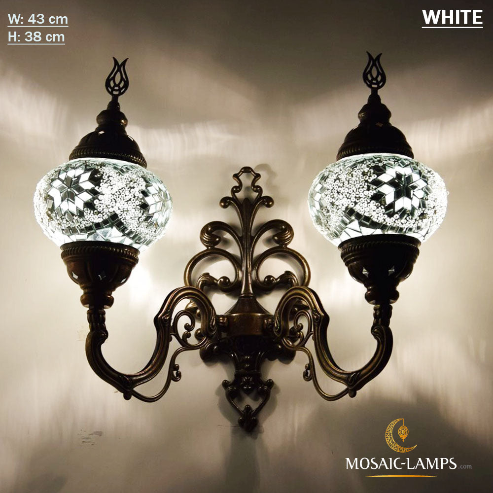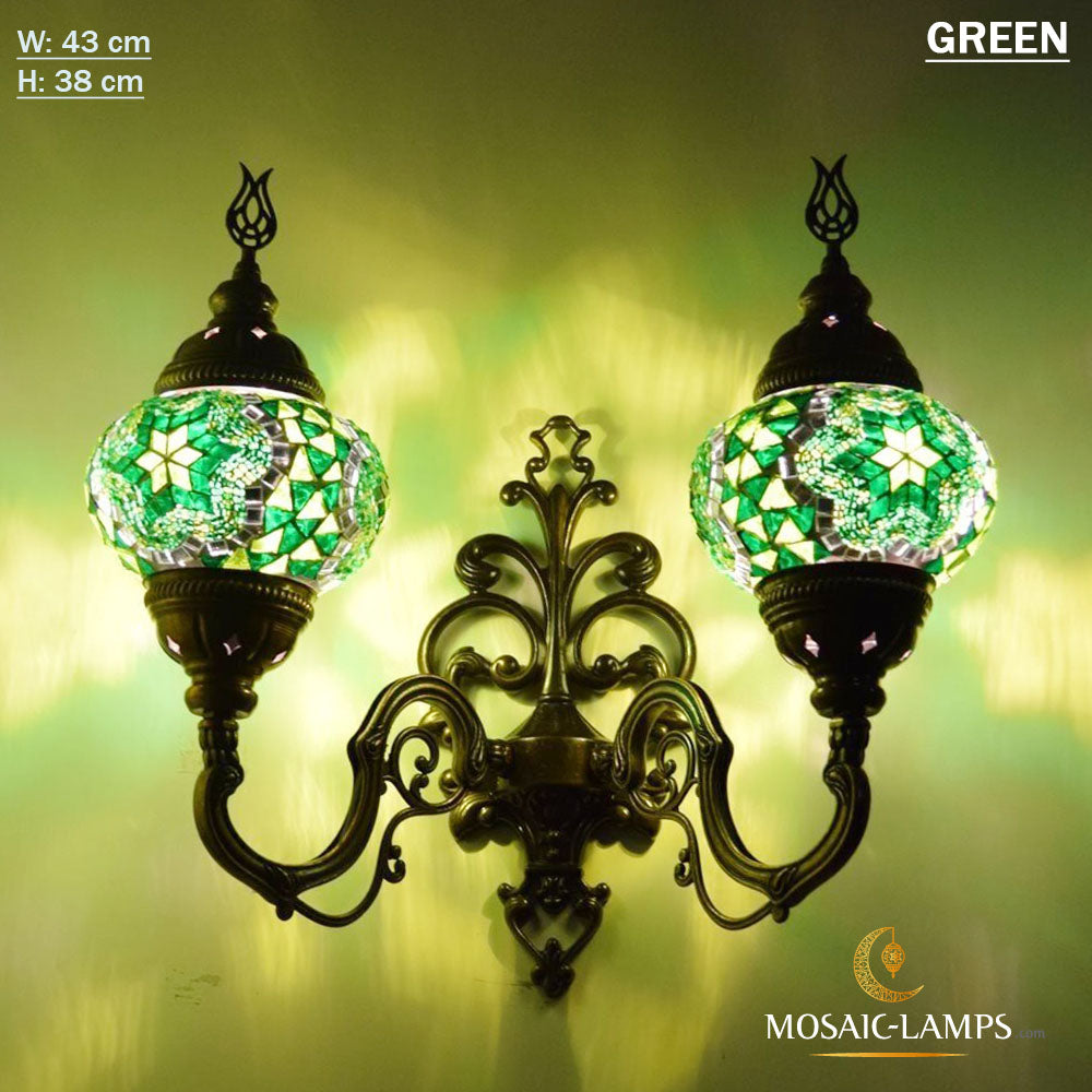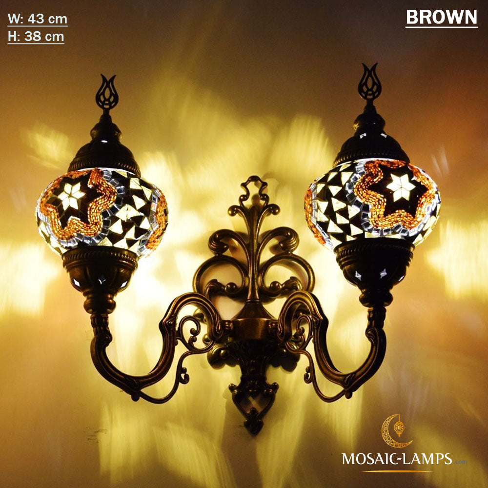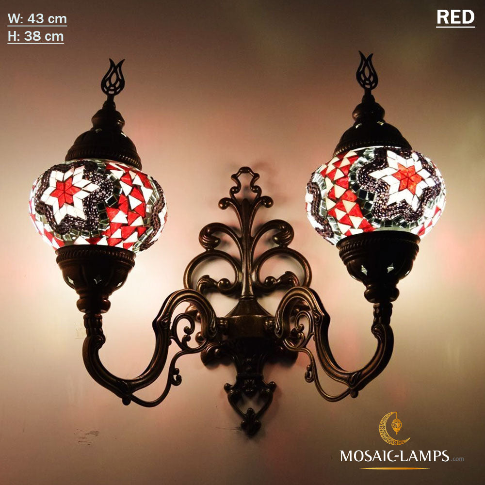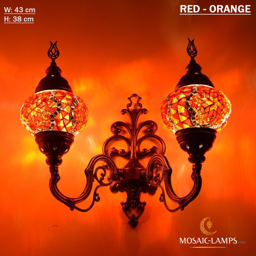 Turkish Mosaic Double Medium Globe Wall Lamp, Traditional Moroccan Vintage Ceiling Lamps, Handmade Marrakech Living Room Bedroom Wall Lights