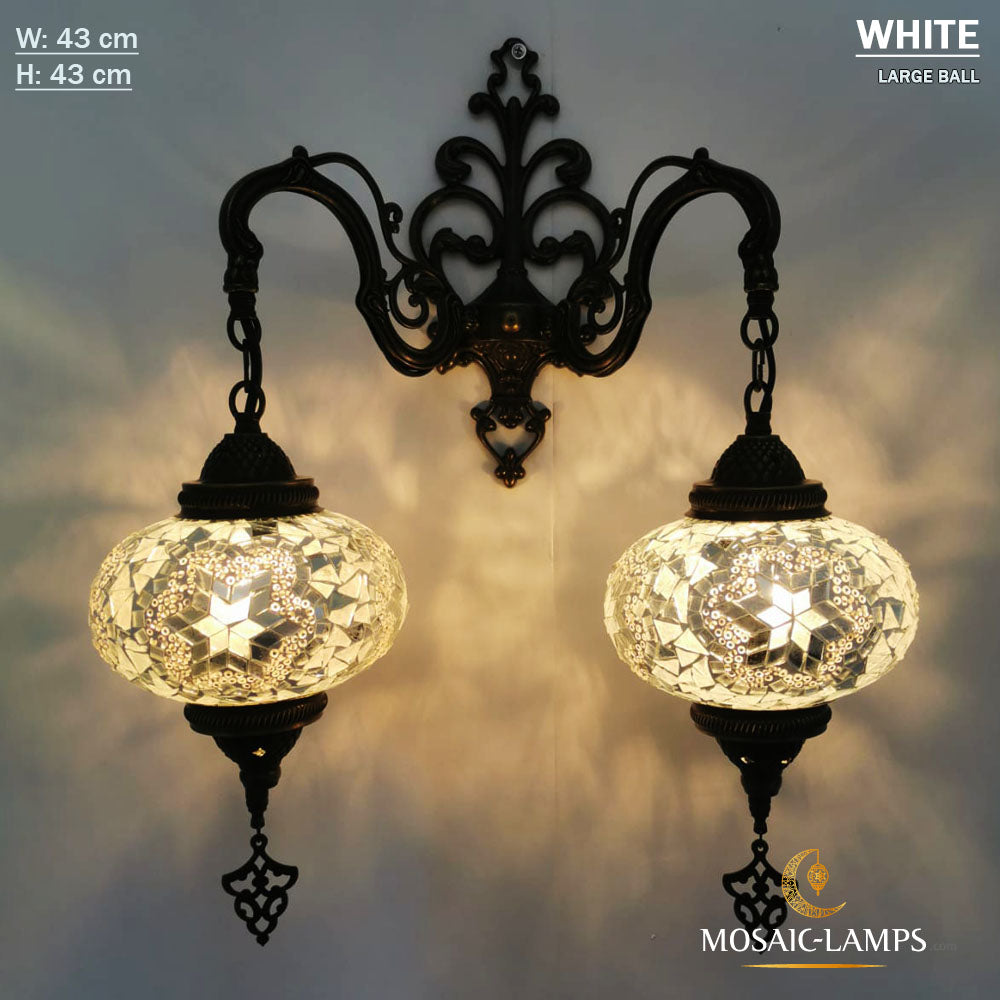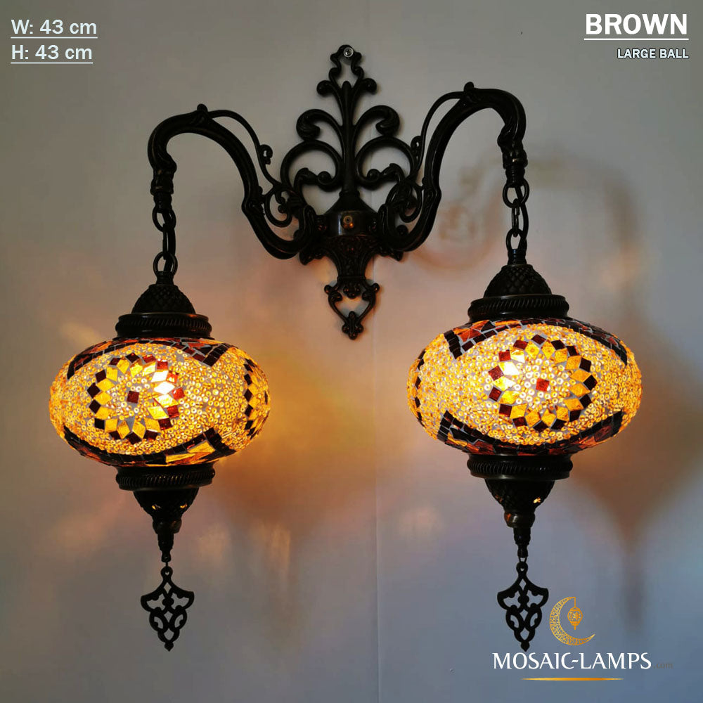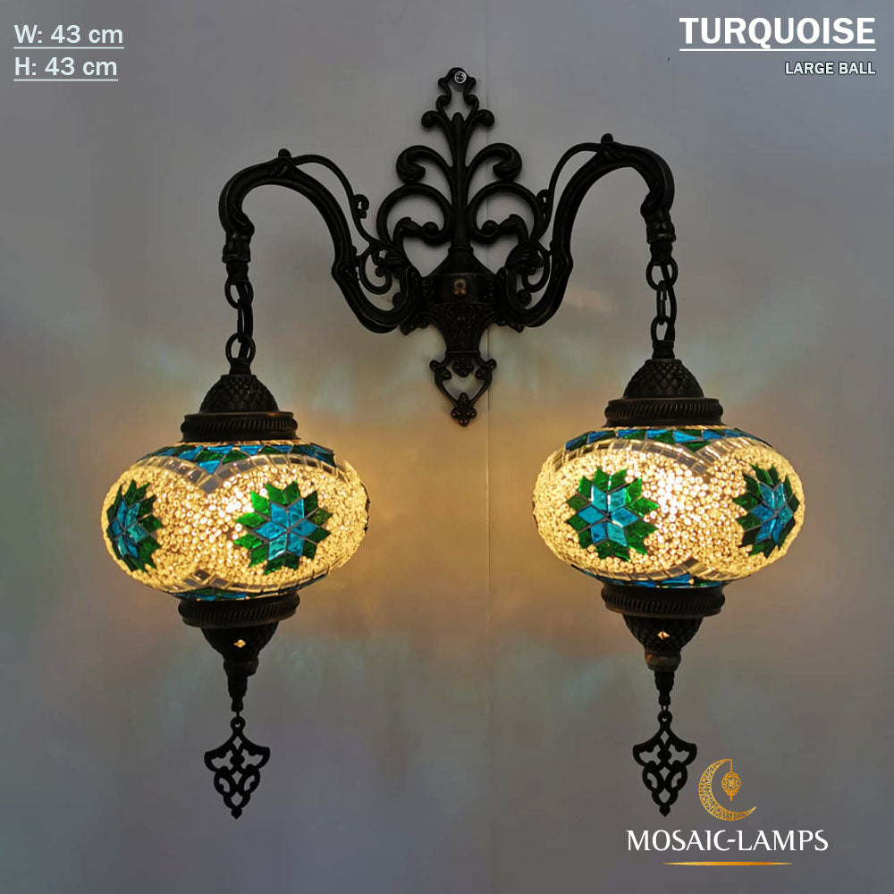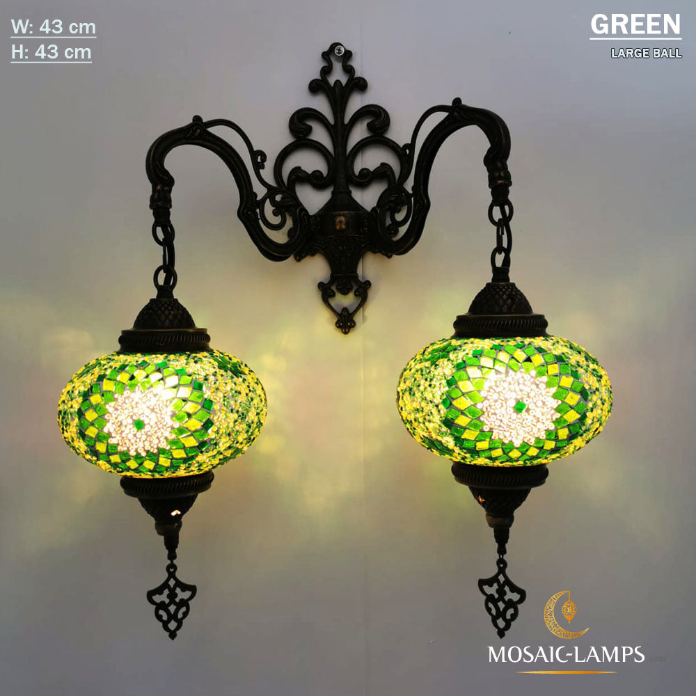 Turkish Mosaic Double Wall Sconce Large Globe, Zamak Metal Handmade Moroccan 2 Globe Wall Lamp.