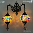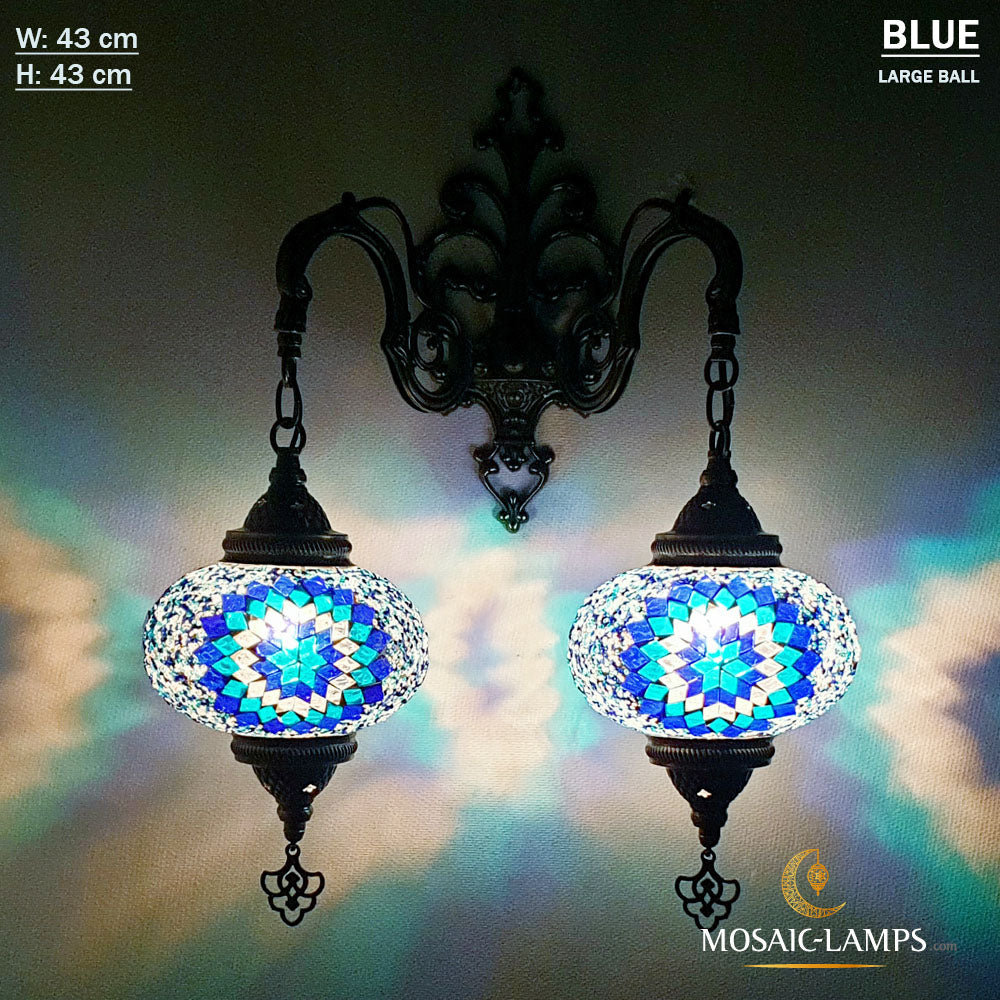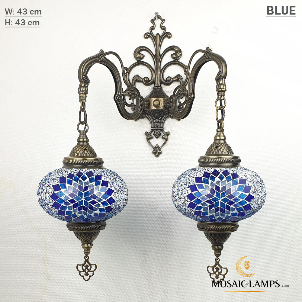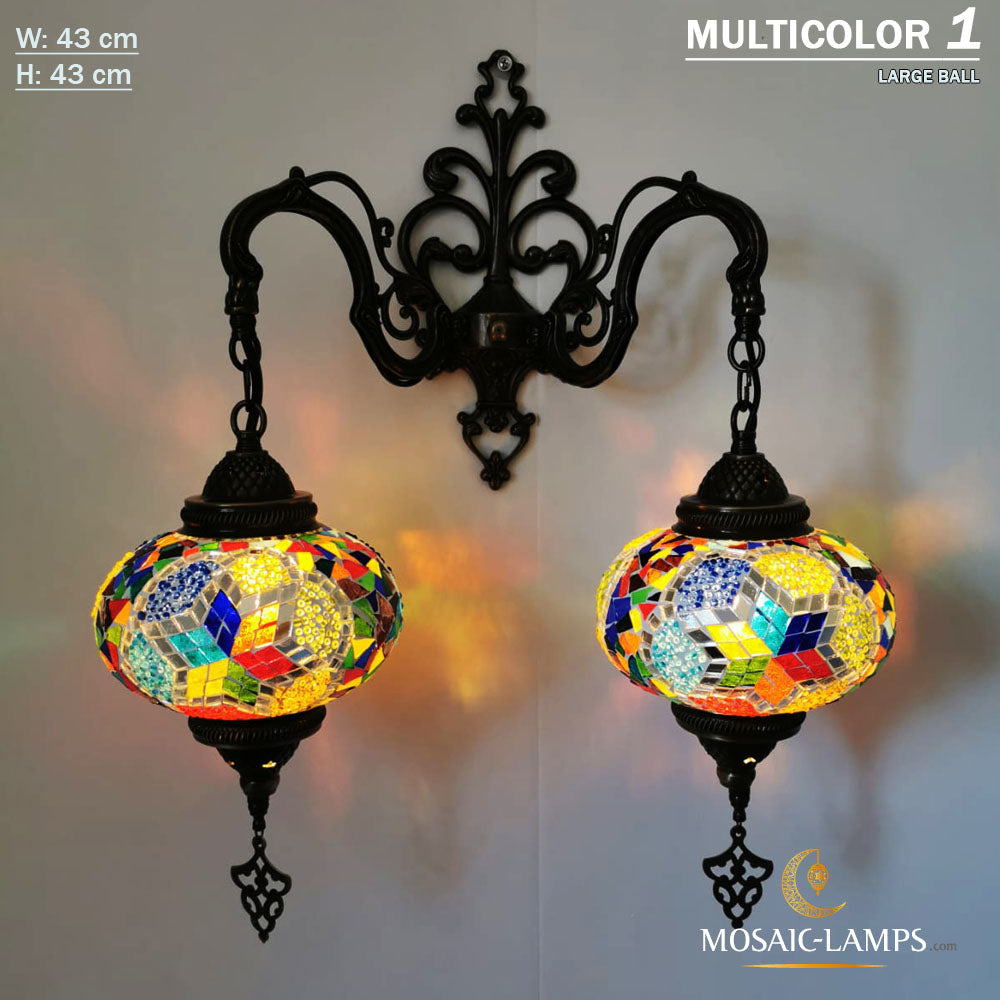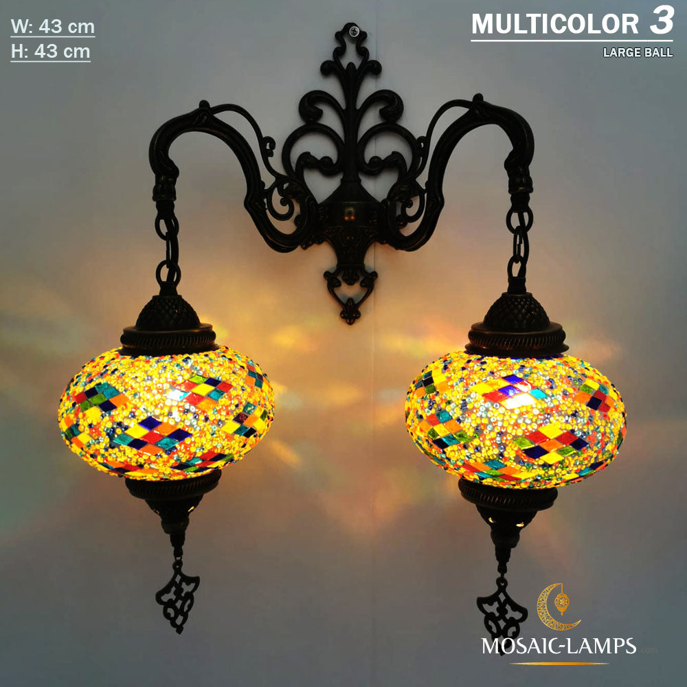 Turkish Mosaic Double Wall Sconce Large Globe, Zamak Metal Handmade Moroccan 2 Globe Wall Lamp.