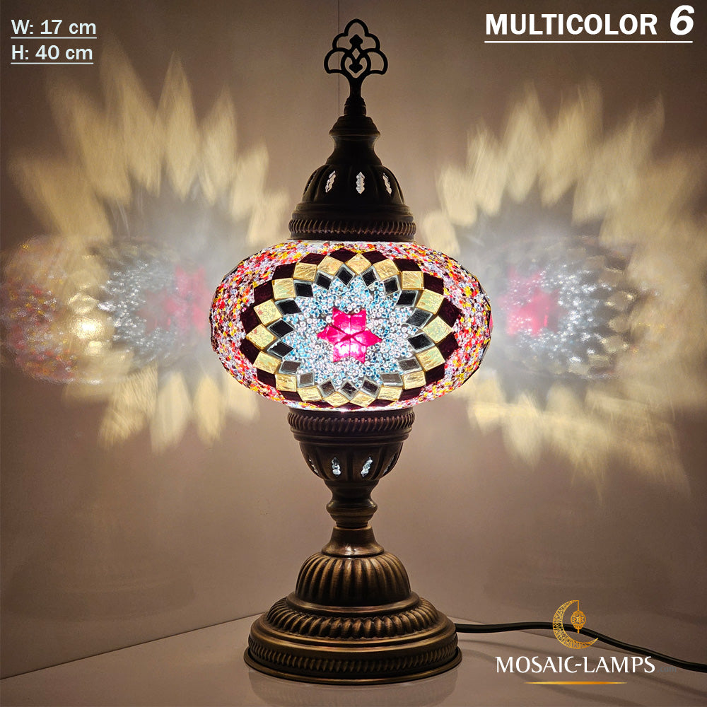 Turkish mosaic large globe table lamp, marrakech turkish desk lamp mosaic glass bedside table lamp moroccan lantern tiffany style night lights with bronze base for living room.