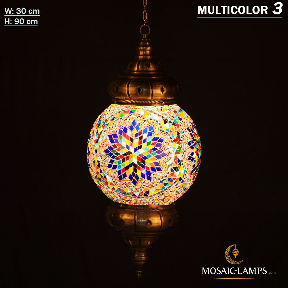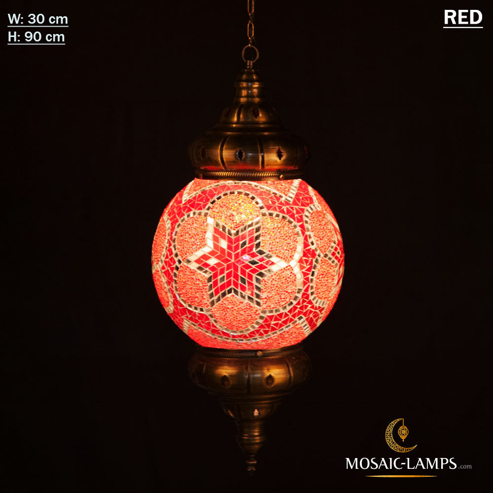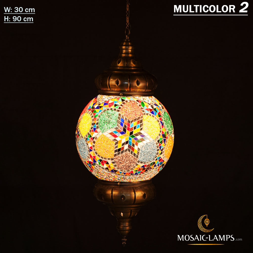 W: 30 cm, Big Ball Handmade Mosaic Pendant Lamp, Turkish, Moroccan Mosaic Lights.