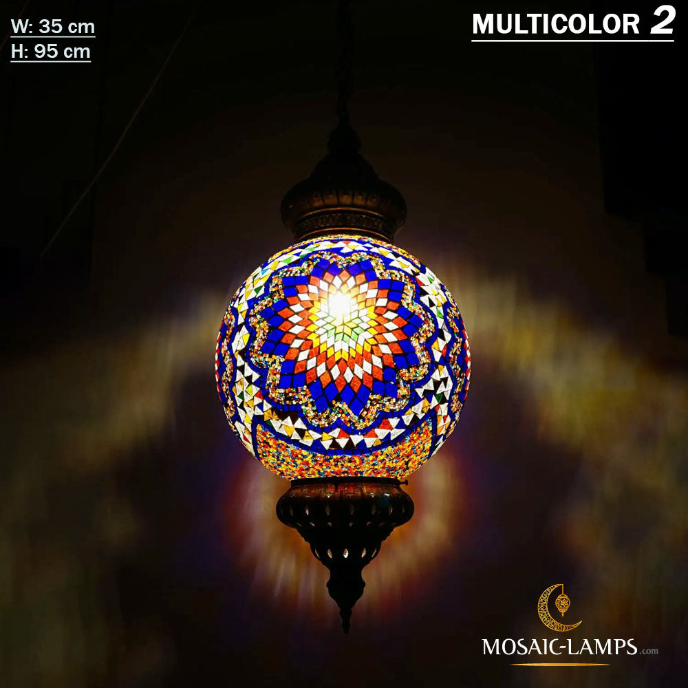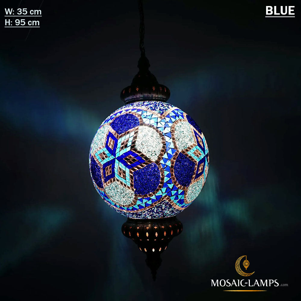 W: 35 cm, Big Ball Handmade Mosaic Pendant Lamp, Turkish, Moroccan Mosaic Lights.