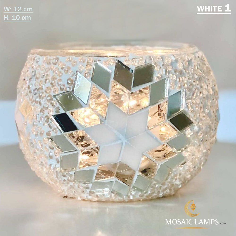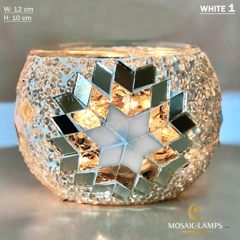 White Star, Turkish Mosaic Candle Holders, Moroccan Candle Holders, Votive Candle, Tiffany Decor Handmade Candle Holder, Table Decor, Yoga Candle.